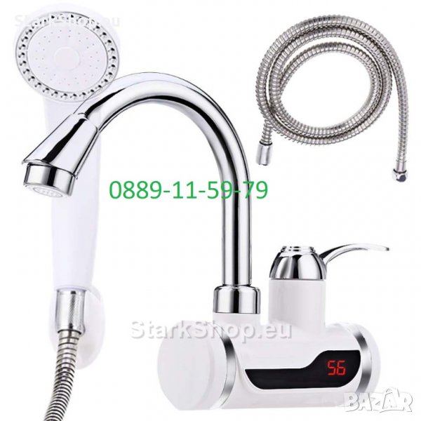 Смесителна батерия с вграден проточен бойлер за хоризонтален (стеннен) монтаж и подвижен душ. Мощен 3000W нагревател за стена.