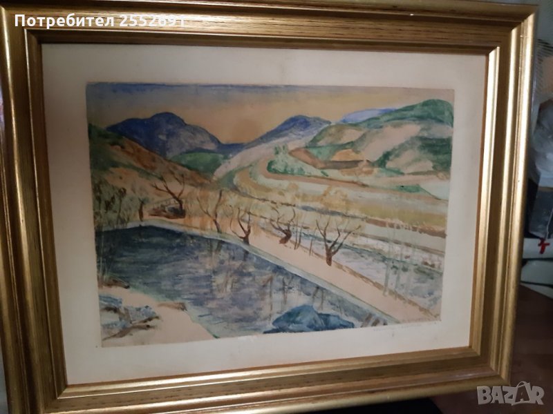 Авторска картина-акварел на картон "Велинград-Клептуза " 1953г. Р-ри с рамката 48/38см.