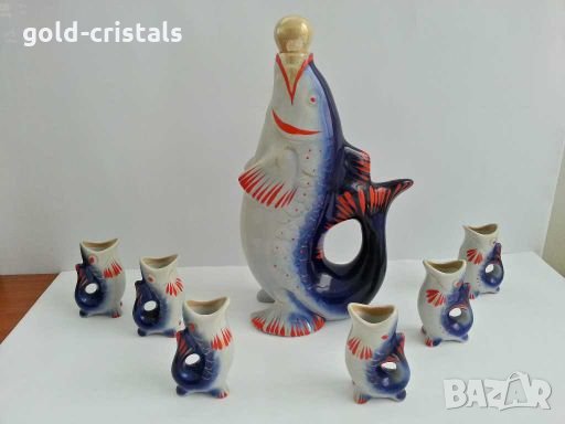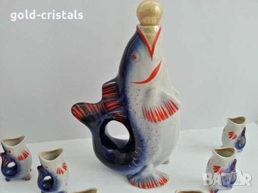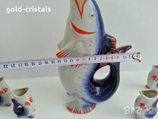 Руски порцеланов сервиз рибки с голяма риба неизползвани без забележки маркирани комплект сет лот ретро арт декор винтидж колекция стари антикварни предмети обзавеждане за дома и семейството съветски ссср стари антикварни предмети обзавеждане за дома и семейството подходящи за подарък за ценители и колекционери