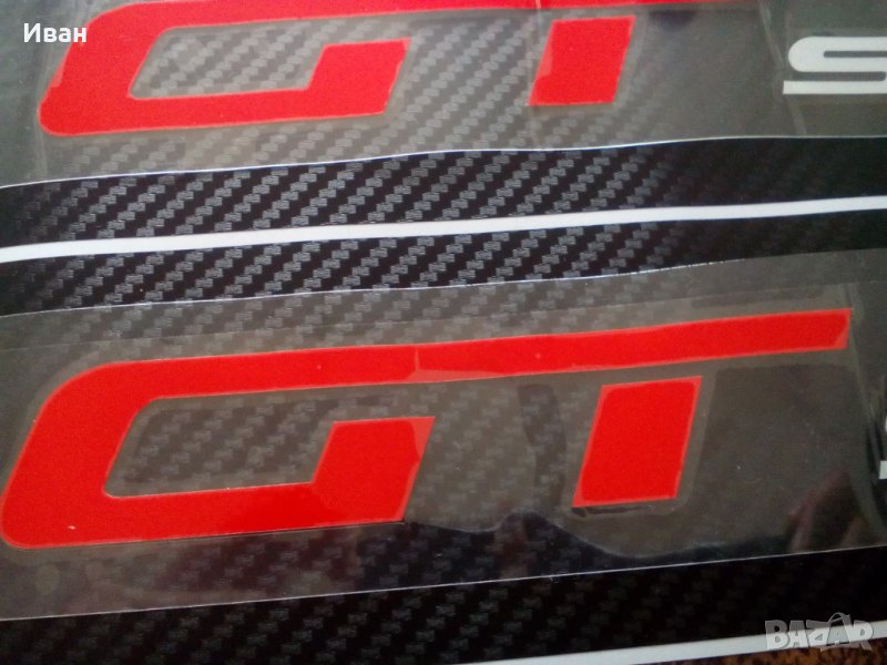 Може и по отделно само стикери: GT Sport размера на стикера на самите букви в най - високата част 3 см и дължина 30 см или само черен карбон стикер.