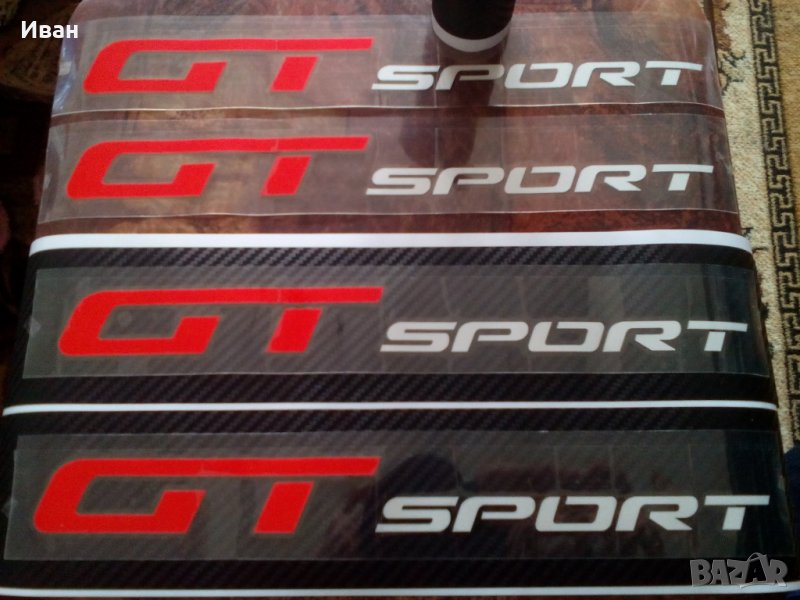 3.Комплект от 4 броя стикери черен карбон и надпис GT sport предназначени за залепване на праговете на автомобила - 28 лв.