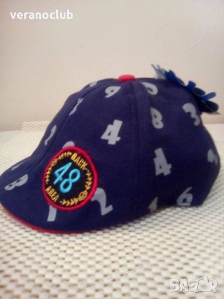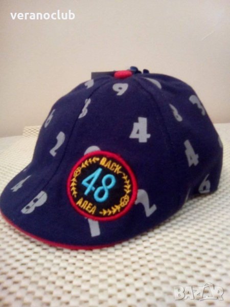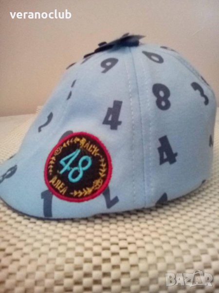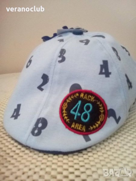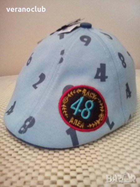 Детски памучен каскет в син цвят с размер 48 см. Шапката отзад е с ластик. Подходяща за деца на около 1 годинка. Памучният трикотаж е изключително удобен за най-малките, защото се характеризира с мекота на материята и създава комфорт по време на носене.