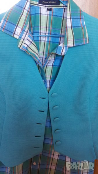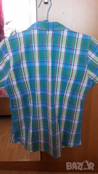 Дамска риза на квадрати с къс ръкав и елек в синьозелен цвят, може да се