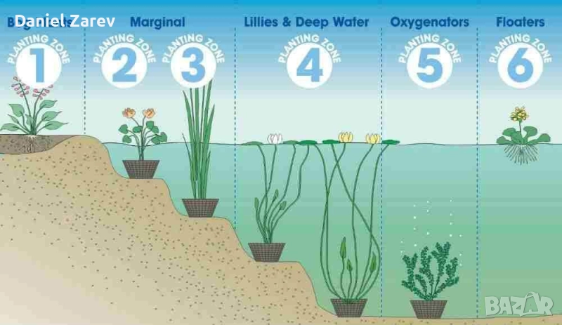 март-април. Дълбочина на водата 0-6 см над саксията. Зона 1 и 2.