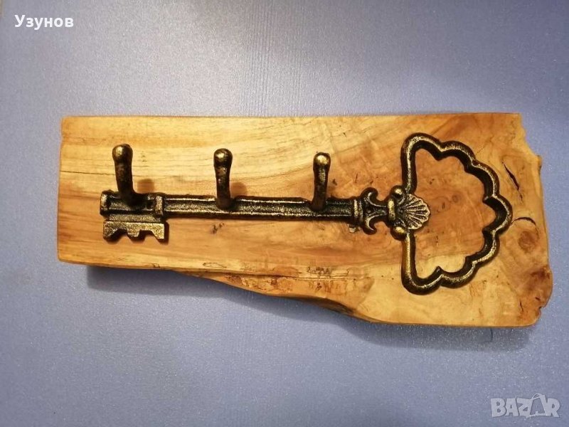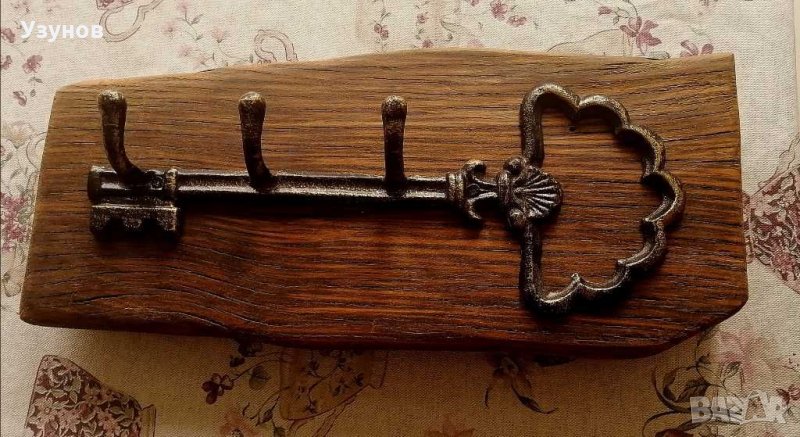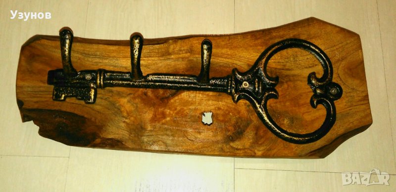 Предлагам на вниманието Ви една красива закачалка, ръчно изработена от естествено дърво и метал. Дървото е с дебелина 3 см. импрегнирано трикратно с естествено масло. Металът е отливка. Закачалката е едно подходящо допълнение към интериора на Вашата механа или битов кът.