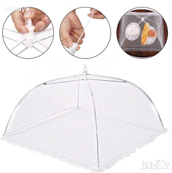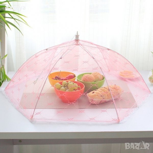 Сгъваема предпазна мрежа за храна комарник чадър протектор за пикник. Чадърче покривало за храна, което я предпазва от мухи и други насекоми. Сгъва се като истински чадър, а това позволява лесно съхранение. Покривалото е идеално за къмпинг, пикник и всякакви открити пространства. Чадърчето е чудесно и за употреба у дома.