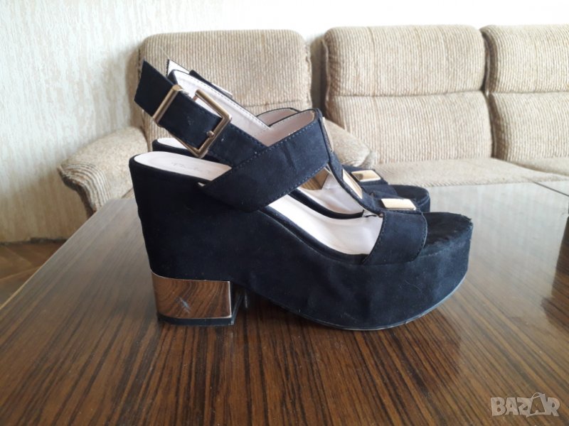 Дамски сандали от черен велур платформа размер 36 → Обява 28834739