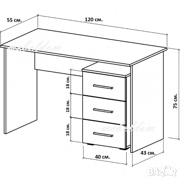 Бюро 120см. и шкаф с 3 чекмеджета(код-1283)