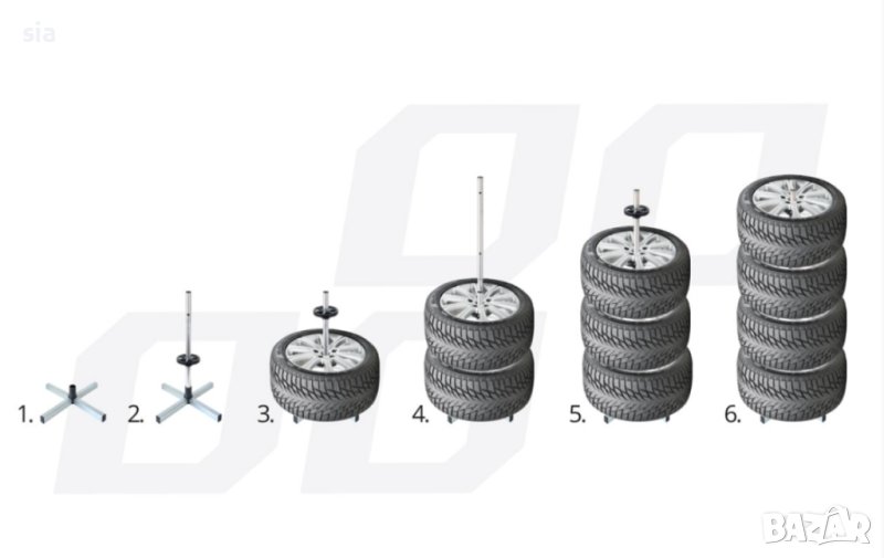стойка за автомобилни колела. Идеална за съхраняване на неизползван комплект гуми или джанти в безопасни условия.
