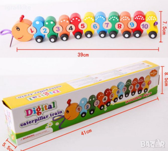 С цветното влакче Гъсеница детето ще се запознае с числата и ще се упражнява в сортирането на отделните части.