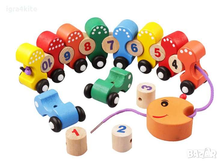 Много атрактивно и цветно дървено влакче с върхова изработка, издялано от висококачествена дървесина за фини движения, упражнение и броене.
