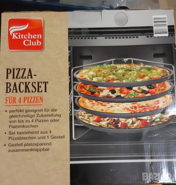 Кухненски комплект за печене на пица Kitchen Club, 4 броя тави, снимка 1 - Съдове за готвене - 28838901 Кухненски комплект за печене на пица Kitchen Club, 4 броя тави, снимка 2 - Съдове за готвене - 28838901 1/2