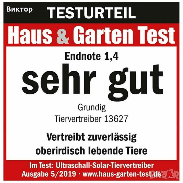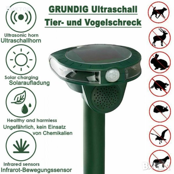 GRUNDIG Соларно, ултразвуково и стробоскопично устройство за защита на животните (Repeller Animal)