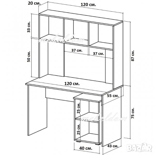 Бюро 120см. с надстройка и шкаф с плавна врата(код-1217) поставяне: до стена,бюрото е еднолицево