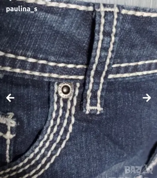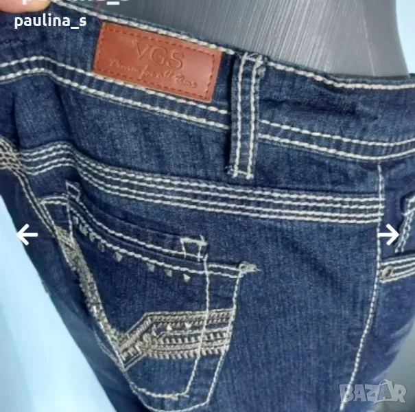 2. Колаж / M / XL - Маркови дънкови бермуди "VRS Denim for all time". Цената е крайна 22,99лв. Дънкови бермуди с подчертани контрастни тегели, брандирани копче и кабси, кожена емблема. Материята е умерено еластична и покрива няколко размера, посочени са. Моля, вижте мерките в обявата. Една бройка, без дефекти и етикет, реални снимки! Талия 42см до 47см едностранно