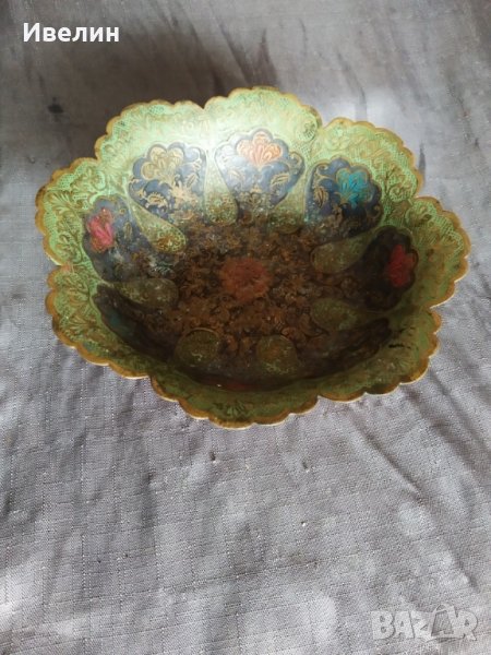 месингов купа,фруктиера.декорирана с емаел.висока е 9см,диаметър 17см.
