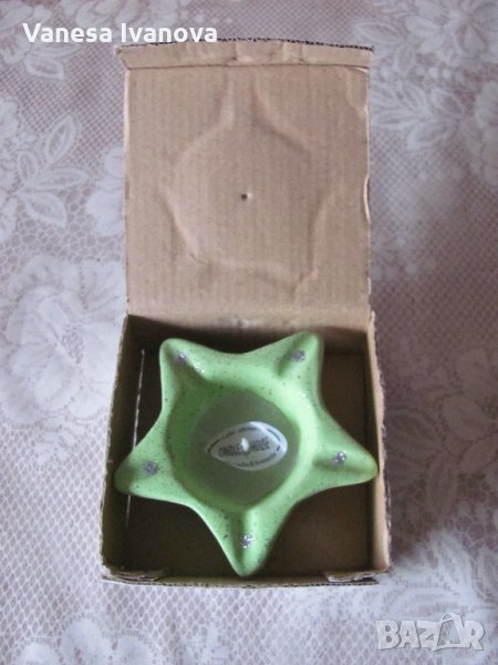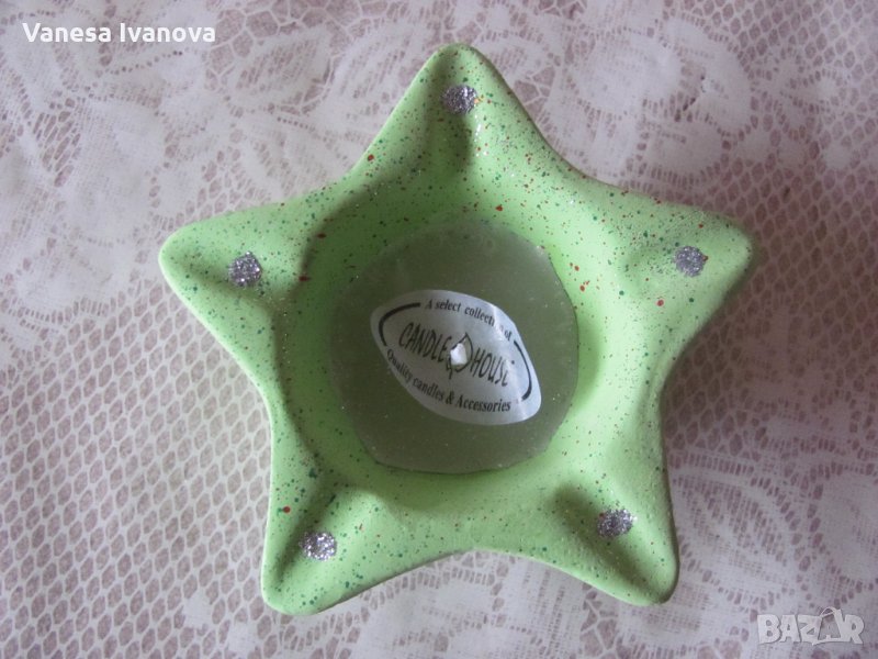 Свещ в керамично легло звезда. Ново.