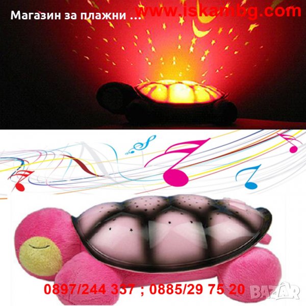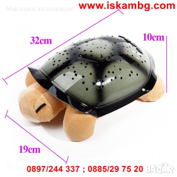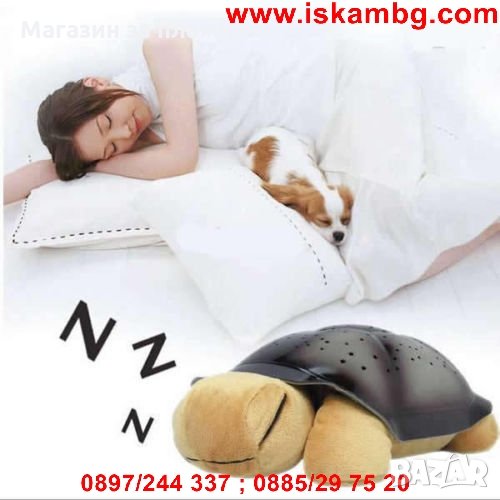 Нощната лампа-костенурка, която проектира 7 различни съзвездия в 4 цвята и 4 приятни мелодии. Перфектна компания за сън за деца от всички възрастови групи. Уникалните възможности на играчката-лампа се крият в нейната черупка, която чрез малките си отвори излъчва съзвездие, което се отразява в стаята на детето - по стените и тавана.