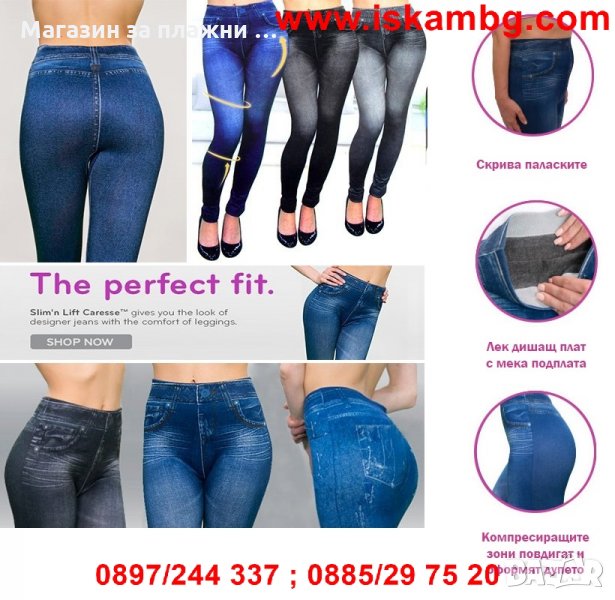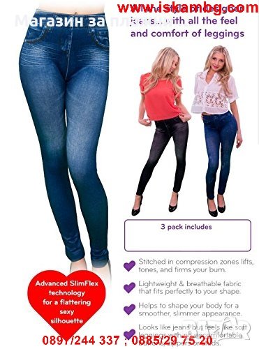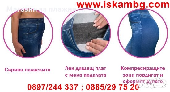 Дамски клин, имитиращ дънки е подходящ за ежедневието. Изработен е от 92% полиестер и 8% еластан.