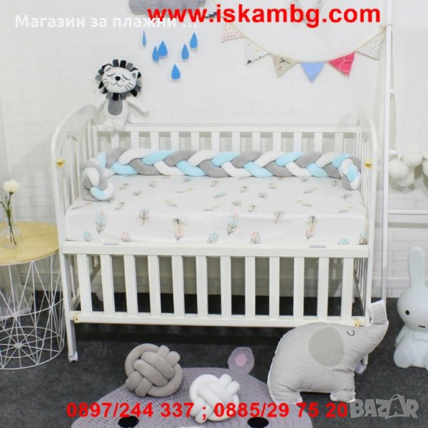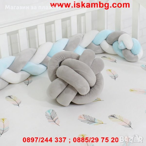 Този красив и функционален Плетен обиколник е вдъхновена от техники за връзване използвани от моряците, както и от морската естетика като цяло. Обиколникът е идеален за добавяне на дизайнерски елемент към детската стая или бебешкото креватче. Този качествен, изящен и мек плетен обиколник предпазва ръцете и краката на бебето ви от заплитане между пръчките на леглото, предпазва главата на бебето от удряне в стените на креватчето, позволява преминаването на по-голямо количество въздух* и може да е в тон с целия останал интериор на детската стая!