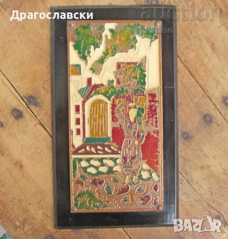 - Емайл. 40 см. Мома носи вода Стара метална картина пано с рамка - 43 евро