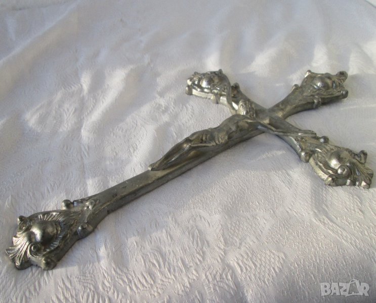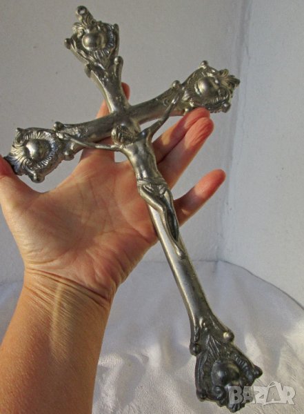 Кръстове различни: 32 см. голям кръст разпятие Исус орнаменти метал икона религия пано, троица → Обява 28872644