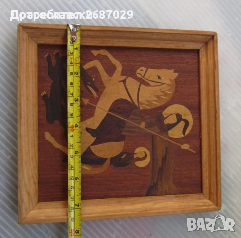 -Св Георги икона пано 15 см религия Интарзия, дърво рамка - 50 евро