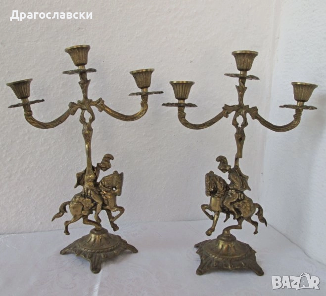 - 2 бр. свещник с рицар, месинг бронз метал, свещници фигура малка пластика 430,28 лв / 220 €