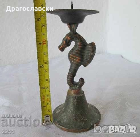 Свещници: Стар еврейски свещник Израел бронз патина, канделабра, морско конче елха → Обява 28874045