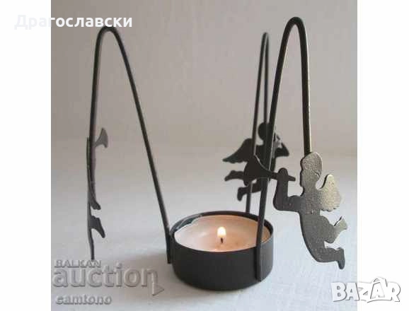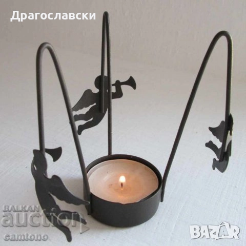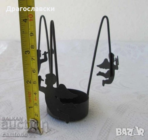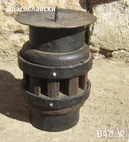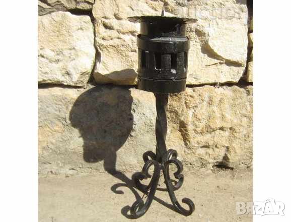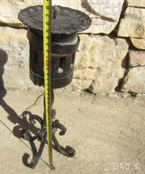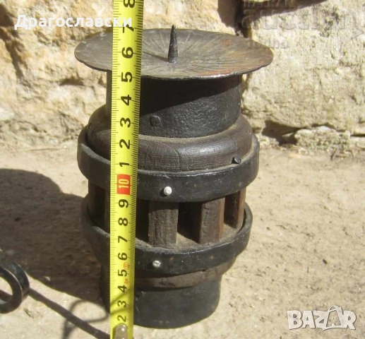 - 35 см. висок свещник с част от колело на каруца от дърво и ковано желязо - 47 €
