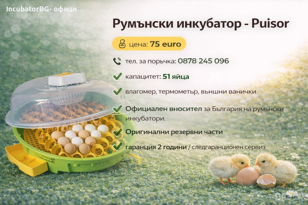 Официалният вносител за БГ.Инкубатори с влагомер и люлка. 2г. ГАРАНЦИЯ