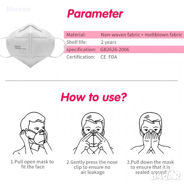 1. Измийте ръцете си преди да носите маска и избягвайте да докосвате