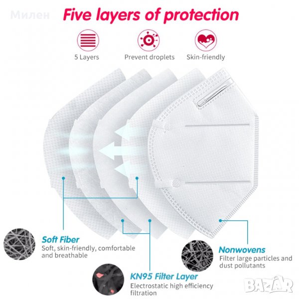 Какво означава КN95? - Означава 95% спиране на частиците от вируса и 5%