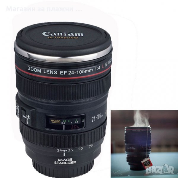 Имате приятели, които са професионални фотографи или пък фотографията им е хоби? Чудите се какво да им подарите? Ето един идеален подарък, който ще ги зарадва от сърце - уникална термо чаша във формата на фотографски обектив. Чудесна е и за из път, тъй като капачката й е със специален отвор за отпиване, който има капаче и по този начин предпазва от разливане. Освен това чашата дълго време ще запази напитката (чай, кафе, капучино и др.) с приятна температура. Чашата е изработена от алуминий и пластмаса, а вместимостта й е 300мл.