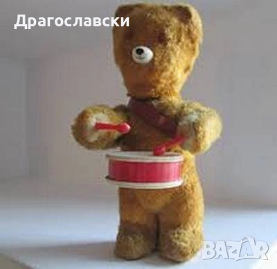 - Плюшено Мече с барабан механична стара играчка, антика, 23 см