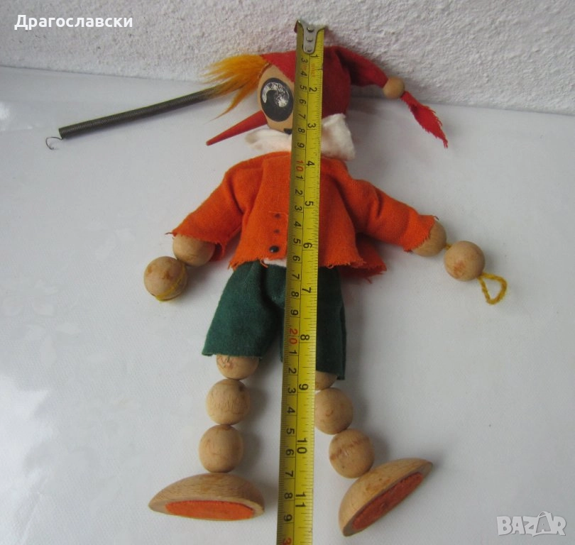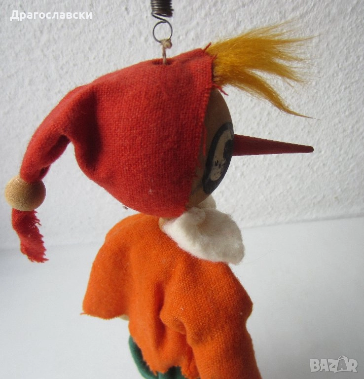 -Пинокио дървена стара играчка, марионетка, Буратино на пружина, виси, 155 лв