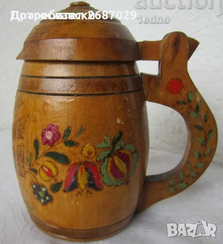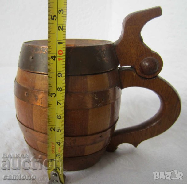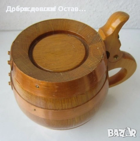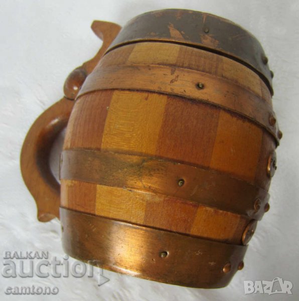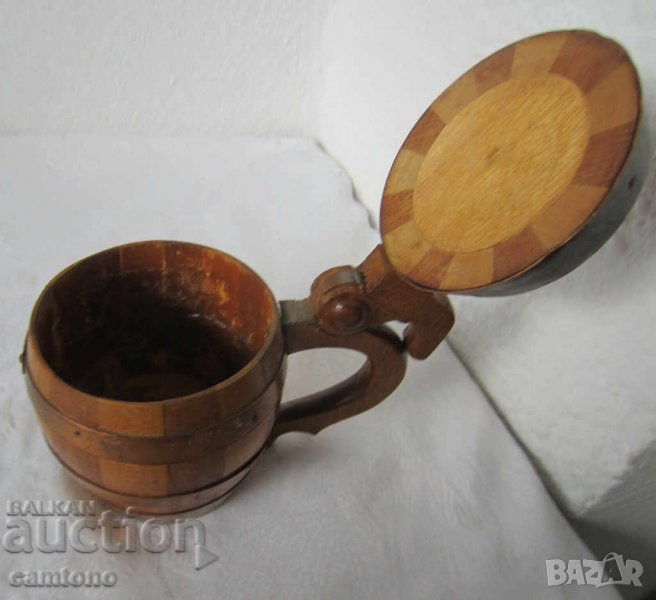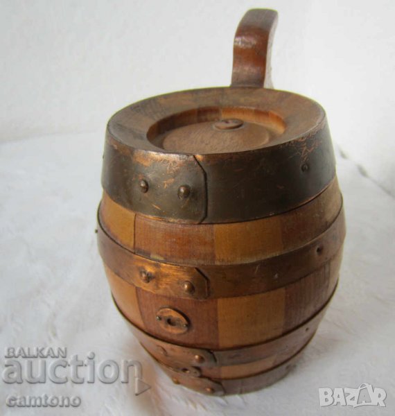дървени халби: Стара дървена халба с капак, съд, Германия, форма буре → Обява 28884182