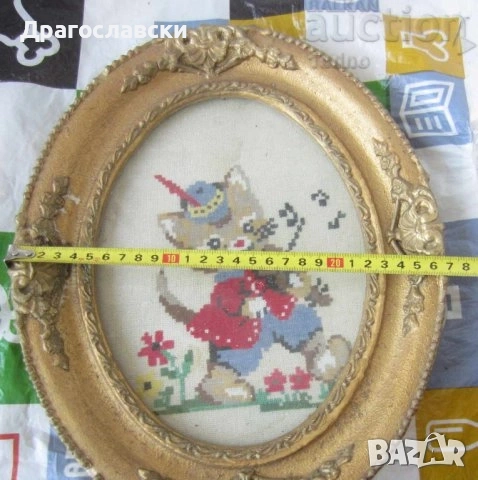 - Голяма стара рамка 32 см. за гоблен с бродирано коте - 25 евро
