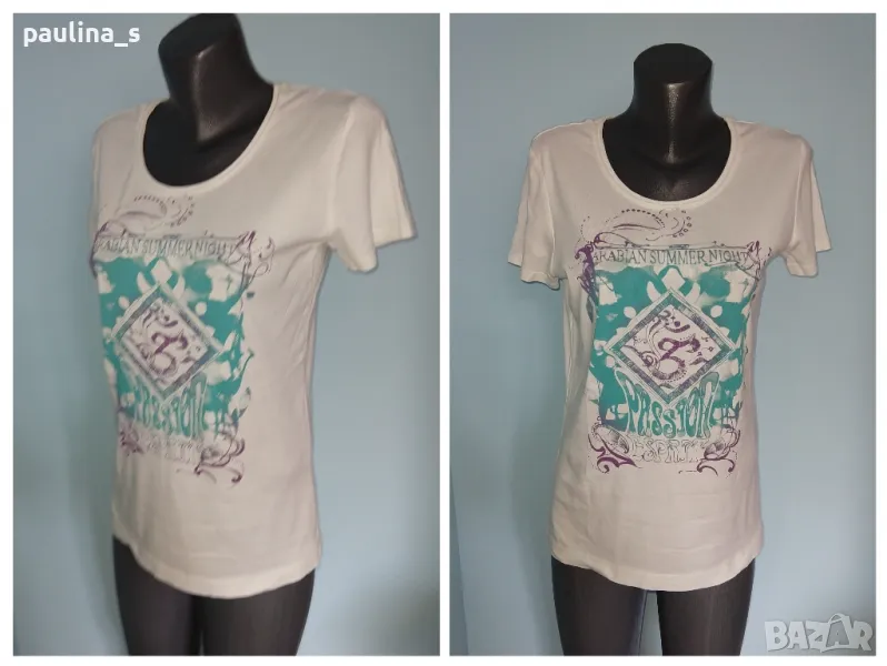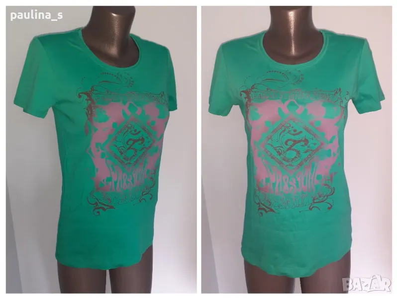 Поради новите правила за заплащане на обновяванията на обявите, моля разгледайте и последните страници на профила ми, обявите са активни и евтини. 1. Колаж / L / 3XL - "Traky" by Esprit. Цената е крайна 14,99лв. Зелена маркова тениска с къс ръкав и щампа. Цветът е ярко зелен и оригинален. Материята е памук и има еластичност, покрива няколко размера, които са посочени. ГО 46см 74см едностранноДължина 64см2. Колаж / XL / 3XL - Маркова тениска с щампа "Traky" by Esprit. Цената е крайна 9,99лв. Бяла тениска с къс ръкав и щампа. Материята е памук и има еластичност, покрива няколко размера. Изключително качествена дреха, няма усукани тегели или други неща. Рамене 40смГО 50см до 74см едностранноТaлия 44см до 68см едностранно Дължина 63см3. Колаж / M / 2XL "Amisu" by Esprit. Цената е крайна 14,99лв. Дамска маркова блузка с буфон ръкави. Деколтето и ръкавите са в набор. Без забележки. Материята е хипоалергична памук и ликра, има еластичност и покрива няколко размера, една бройка е, нова без етикет.Рамене 43смГО 43см до 74см едностранноТалия 40см до 67см едностранно Долу 47см до 77см едностранно Дължина 62смМоля, разгледайте и другите обяви и последвайте профила. При покупка за над 90лв, поемам част от доставката до офис на Еконт и правя отстъпка от общата цена, така цената за доставката не излиза толкова непосилна. Приятно разглеждане. Продажбата е с благотворителна цел, цената не се коментира. Благодаря за вниманието и отделеното време 🙂