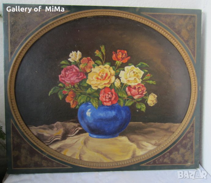 1945 Натюрморт цветя /рози в синя ваза, голяма картина → Обява 28888697