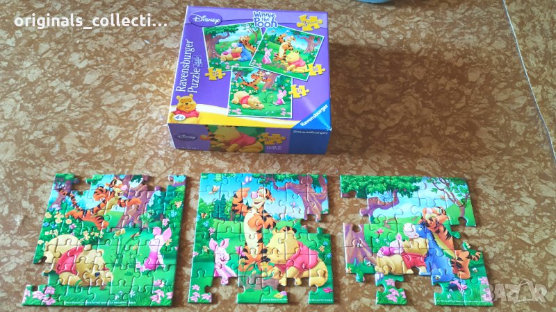 Предлагаме две колекции с пъзели. Видно от снимките в много добро състояние. От колекцията на Мечо Пух има малко повече липси, от тази на Мини Маус от четири пъзела лиспват само 3 части, като два от пъзелите са цели. Цената е много ниска с оглед на това, че този на Мини Маус е купен за 20 евро, а тези с Мечо Пух за 24,99 лв. Като общата им цена е била 55 лв.