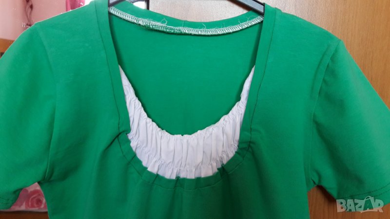 Дамска памучна зелена блуза къс ръкав с бяло деколте, снимка 1 - Тениски - 28896056 Дамска памучна зелена блуза къс ръкав с бяло деколте, снимка 2 - Тениски - 28896056 Дамска памучна зелена блуза къс ръкав с бяло деколте, снимка 3 - Тениски - 28896056 1/3