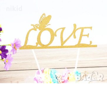 Love пеперуда мек брокатен топер украса табела за торта → Обява 28896249