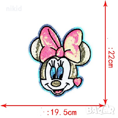Голяма глава Мини Маус с очила с пайети апликация за дрехи и други → Обява 28897116