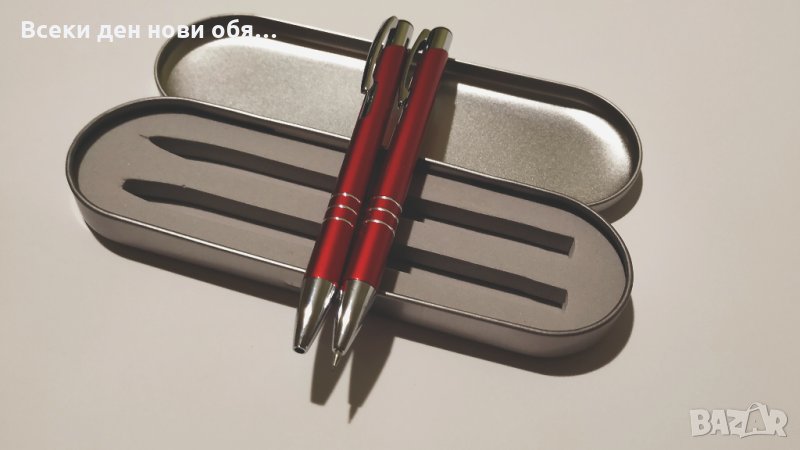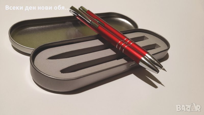 Луксозен комплект - химикал и тънкописец в метална кутия → Обява 28898116