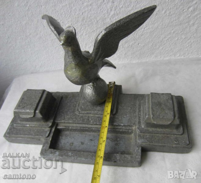- СТАРА БЪЛГАРСКА МАСИВНА МЕТАЛНА МАСТИЛНИЦА с ГЪЛЪБ птица - 81 евро