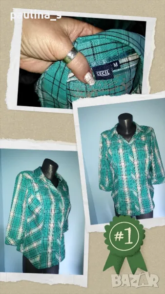 1️⃣. Колаж / M / 2XL - "Cecil". Цената е крайна 29,99лв. Брандова еластична риза. Моделът е втален с радиални странични парчета. Материята е памук и ликра и покрива няколко размера. Като нова е, без дефекти и етикет.
