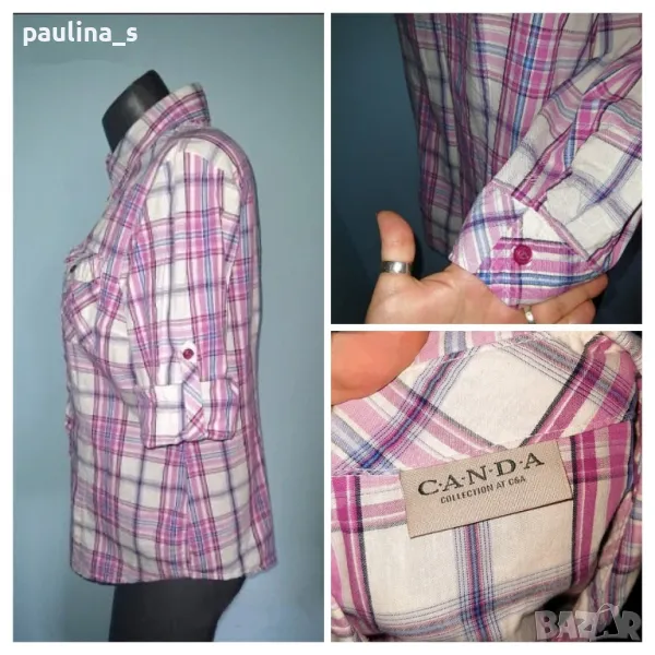 3️⃣. Колаж / Дамска маркова риза "Canda" by C&A. Цената е крайна 24,99лв. Дамска маркова риза от 100% органичен памук без еластичност, хипоалергична. Дължината на ръкавите се регулира с лента и копче. Хипоалергична и много красива. Декорациите са с малки джобове, копчетата са перлени. Като нова е, без дефекти и етикет.