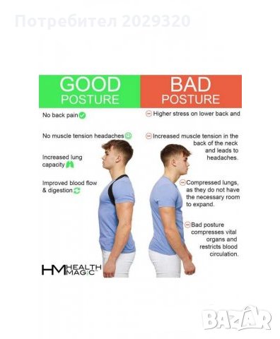 Регулируем колан за гърба, Коректор за стойката, Черен → Обява 28904430