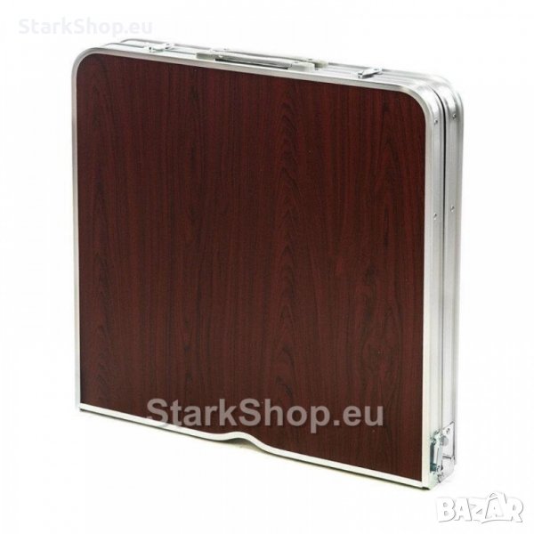 Сгъваема маса за къмпинг със столове (4 стола) и отвор за чадър. Столчетата не са прикрепени към масата, което дава възможност да се използват самостоятелно. Компактен, лек и удобен комплект, подходящ за къмпинг, риболов и пикник. Масата се сгъва, a столчета, които се прибират в нея, не заемат много място и лесно се пренасят.